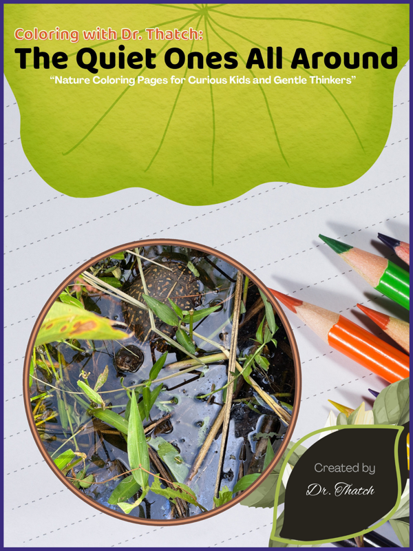 “The Quiet Ones All Around” is a nature coloring book created by Dr. Thatch for curious kids, gentle thinkers, and anyone who finds joy in the quiet corners of the world.
